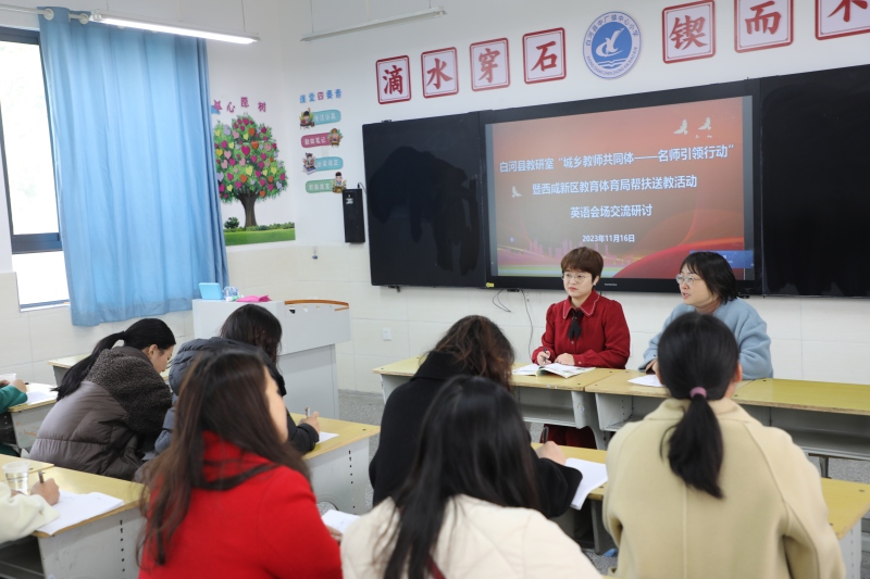 为进一步落实好中省定点帮扶和区域帮扶工作要求,充分发挥西咸新区优质教育资源辐射引领作用,把高质量课堂教学送到白河县,近日,西咸新区教育系统2023年对口帮扶送教活动在安康市白河县开展。本次帮扶送教活动由西咸新区教育体育局处级领导带队,在前期充分征求白河县教育课程需求的基础上,有针对性地选派了来自西咸新区沣西文教园第一小学、沣东实验小学、沣西第三幼儿园等6所学校中曾获得省市学科带头人、教学能手和优秀校园长等荣誉称号的8名名师开展专题送教活动,白河县各小学、幼儿园校园长和教师代表约200人参加。