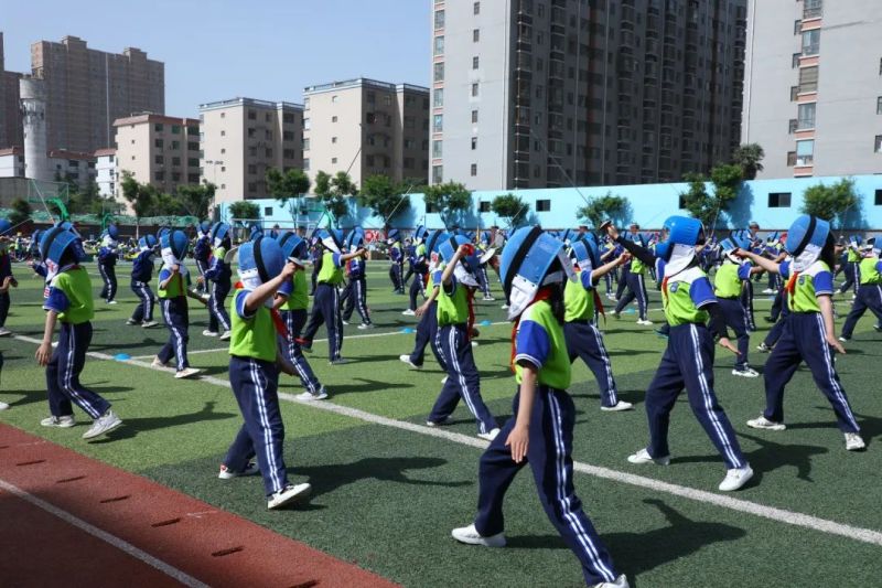 西咸新区秦汉渭柳小学充分利用大课间时间,鼓励师生走出室外,走向运动场,积极参与阳光体育运动。