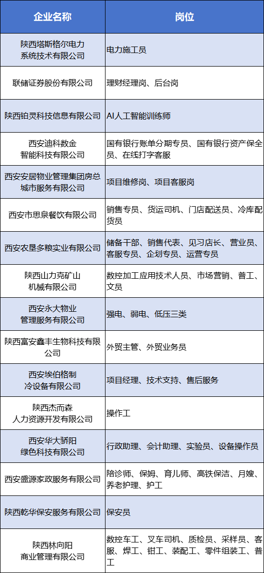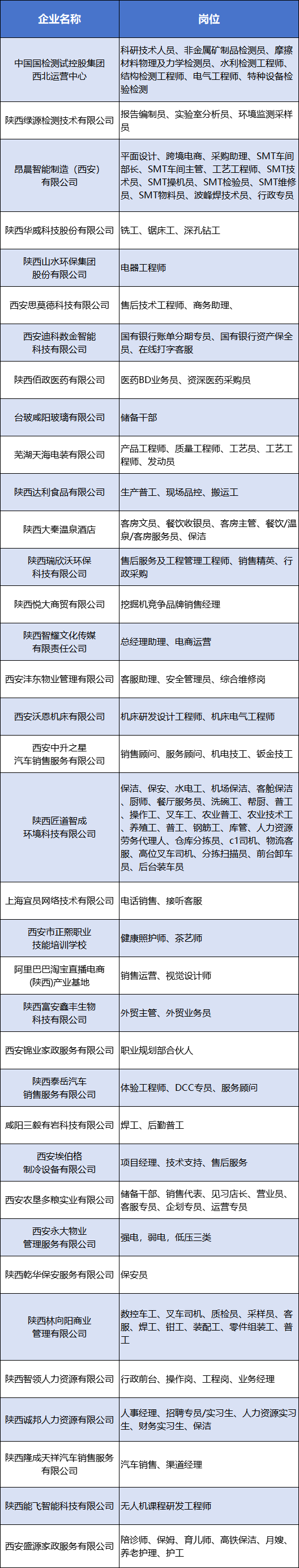 “西咸新区金秋招聘季”民营企业专场招聘会岗位及企业名单