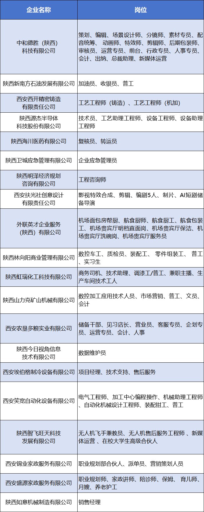 招聘岗位及企业名单