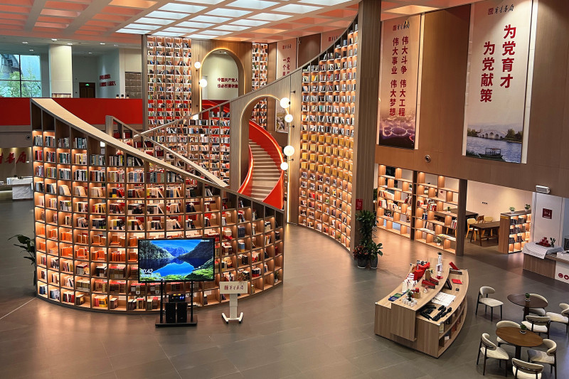 西咸党校育才书局(以下简称“育才书局”)坐落于沣河西岸,紧邻西安地铁5号线文教园站,营业面积1400平方米,藏书3万余册,设阅读座位300余个,是西咸新区首家以红色党建为主题的复合式书店。