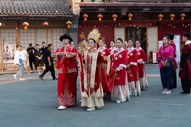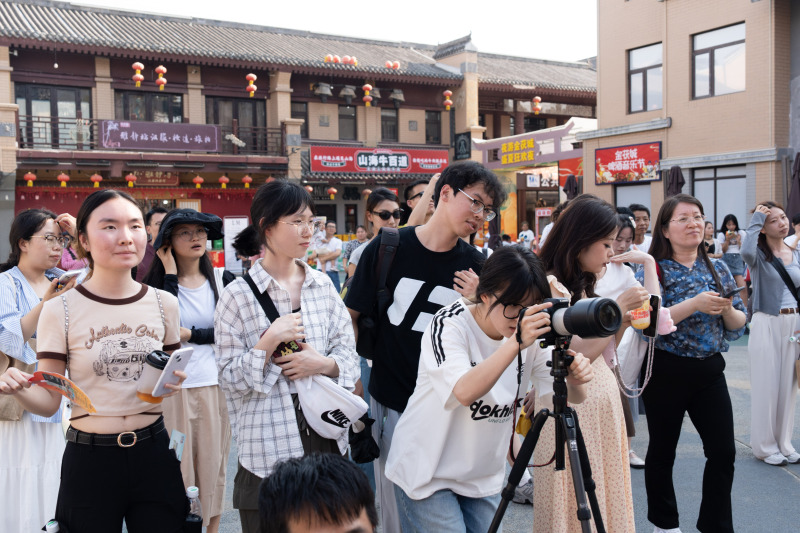 茯茶镇的微演艺集群作为文旅产业配套,其中的趣味性和交互性让学生们大饱眼福。