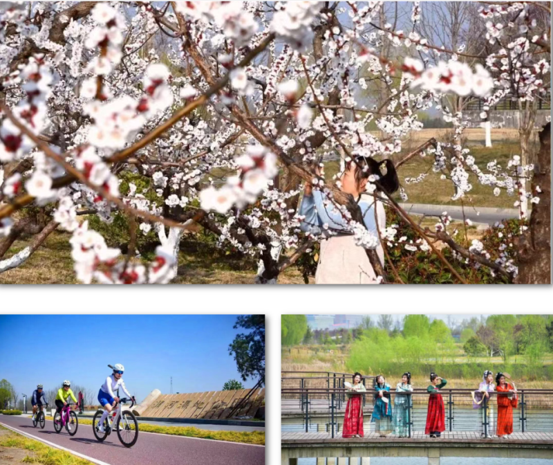漫步渭河、沣河滨水生态廊道,饱览春日河湖相映的青绿盛景;在昆明池体验清明踏青、风筝DIY、宠物主题互动等趣味活动,沉浸式感受春日户外之乐。