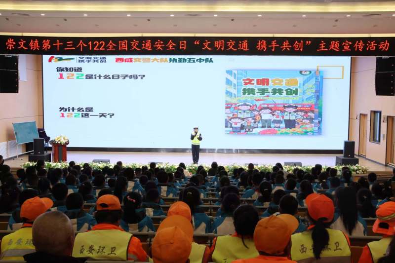 2024年12月2日是第十三个“122全国交通安全日”,主题是“文明交通携手共创”。为深入贯彻落实省市及新区关于开展“全国交通安全日”活动要求,增强崇文镇人民群众交通安全意识,普及交通法规知识,崇文镇人民政府联合西咸新区教育体育局(泾河工作部)、西咸新区公安分局交通警察大队执勤五中队共同在泾河新城第四小学开展主题宣传活动,旨在倡导师生文明出行,预防减少交通事故,营造安全、畅通、文明的道路交通环境。