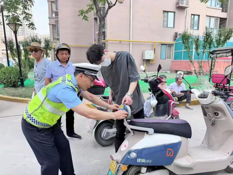 守护出行安全,共织安全之网。在交通安全宣传区域,交警详细地讲解了行人、非机动及机动车出行的日常交通安全法规,还结合社区周边常见的交通违法行为,如电动车逆行、行人翻越护栏等,进行深入分析,让居民们清楚地了解这些行为的危险性。此外,交警和社区工作人员还细心地为居民的交通工具张贴反光贴,为居民夜间出行安全增添了一份保障。