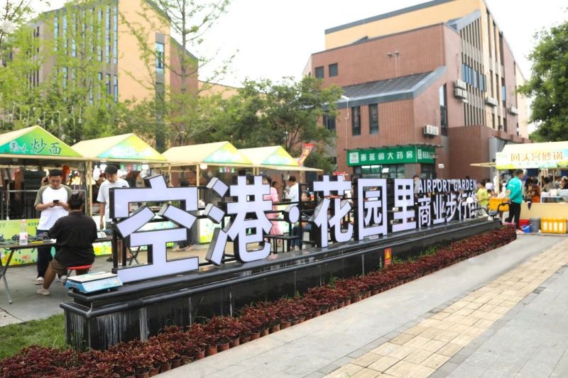 “前些年,这里用餐选择很少。”在空港花园社区附近上班的程盼回忆,“现在有了商业街,吃饭的地方很多,晚上还有夜市,很方便。”