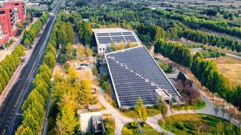 源居楼窗户上设置遮阳和反光板,可获得均匀的自然光照,楼顶利用休息棚顶还能进行光伏背板热量回收,实现光伏一体化技术应用。整座建筑的智慧绿色能源系统面积达2750平方米,年发电量约40万千瓦时。
