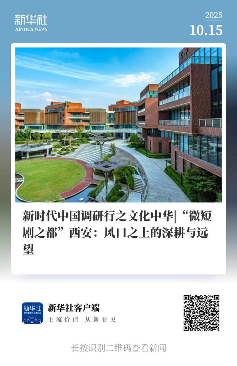 10月15日,新华社发布《“微短剧之都”西安:风口之上的深耕与远望》,报道西咸新区持续完善产业链和服务链,加快打造一流微短剧产业集群的生动实践。