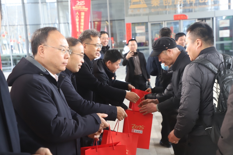 招聘会最后,85名新入职机场T5航站楼商务区入驻品牌商户的员工代表收到了西咸新区社会事业服务局发放的入职大礼包,带着浓浓的温暖与关怀,坐上西咸新区“就业先锋”送工入企直通车,踏上了新的工作岗位。