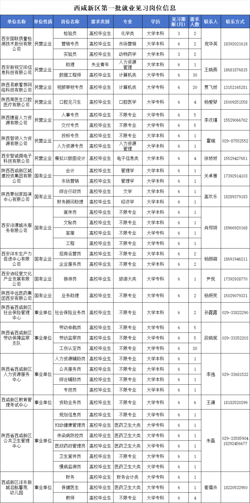 2025年西咸新区第一批就业见习岗位