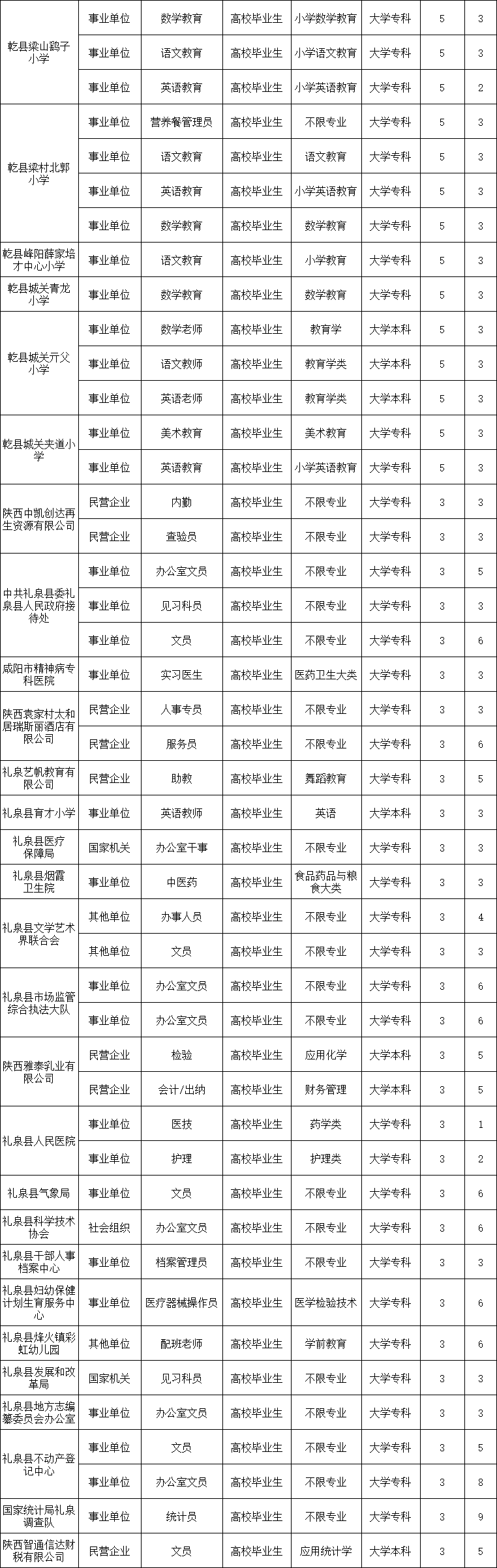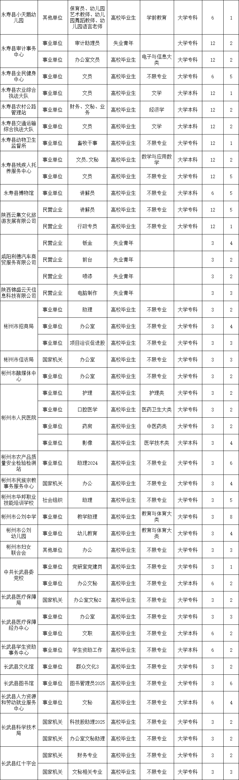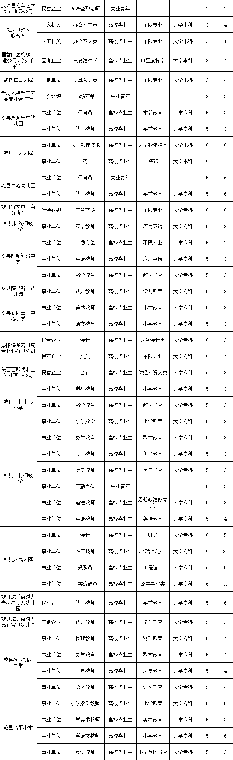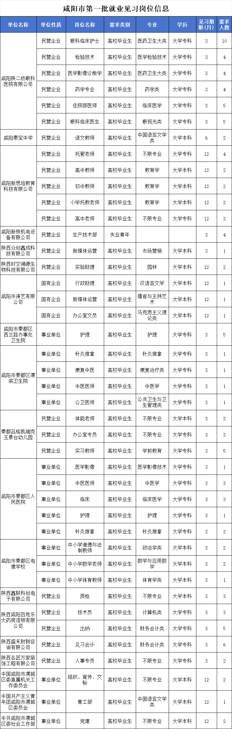 2025年咸阳第一批就业见习岗位