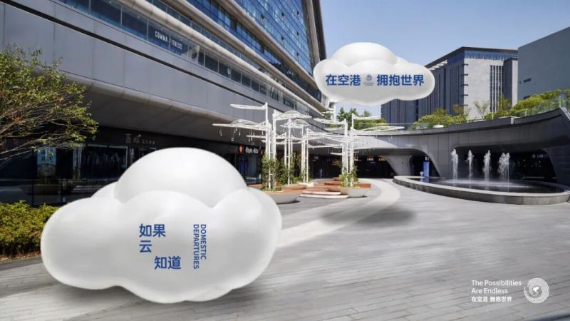设计中巧妙融入飞机舷窗、机身、尾翼、云朵及旅客行李箱等航空代表性元素,深度融合智能标识理念,通过“化繁为简”的设计手法,打造出指引立牌、指引吊牌、创意果皮箱、云朵装置座椅四大类共三种风格的标识体系,既传递出“在空港,每一次出发都是梦想启航”的品牌温度,更实现了创意构想与区域整体环境的无缝融合。