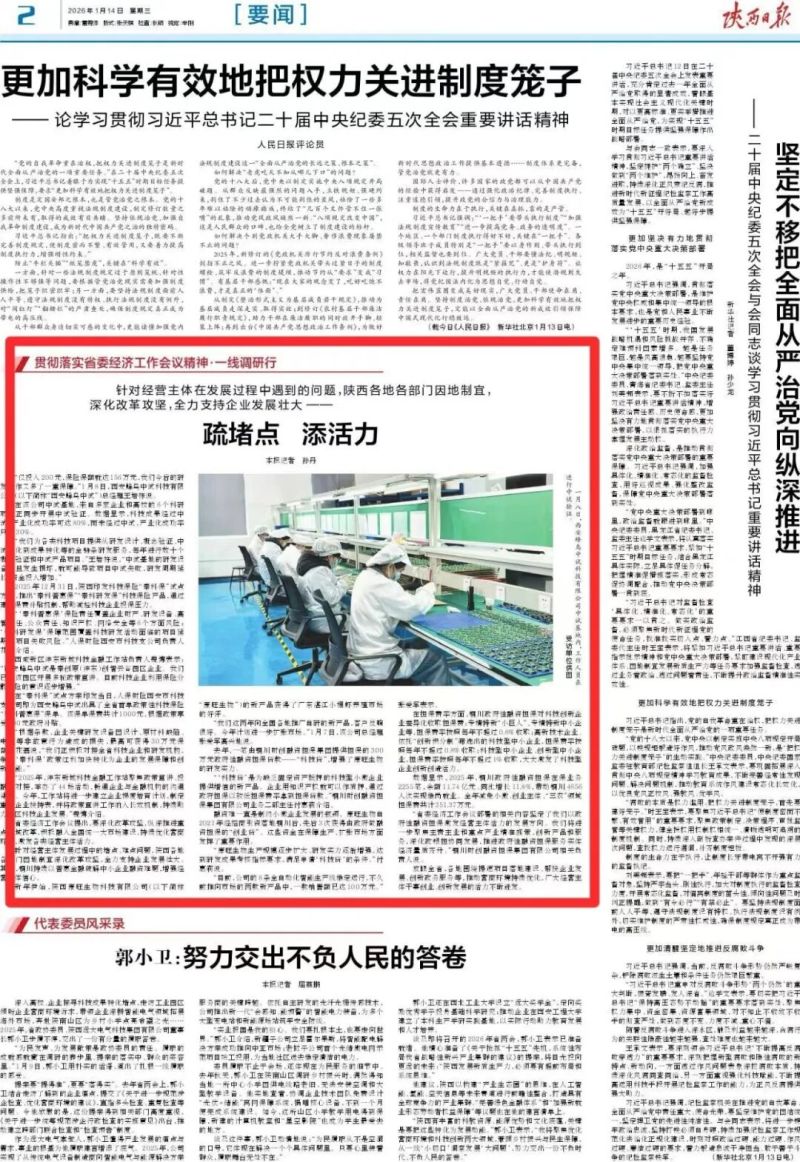1月14日,陕西日报刊发报道《疏堵点 添活力》,聚焦全省首单政策性科技保险“秦科保”落地沣东新城创智云谷园区企业西安蜂鸟中试科技有限公司,分散科技企业发展风险,为区域科技成果转化增添多重保障。