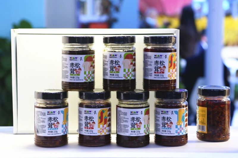 “这看着像蘑菇的东西是啥?做成酱料味道还真不错。”一位参观者向工作人员询问。“这是我们赤松茸酱礼盒,松茸脆适合从菇帽开始吃,鲜味一层层加深,当作茶点很合适。松茸酱里面有赤松茸、牛肉、花生仁、白芝麻,早餐夹馍吃,营养又美味。”“西咸农XIAN”品牌推荐官杨洋热情地介绍道。