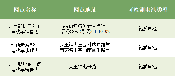 西咸新区电动自行车电池健康检测评估及回收网点信息公示