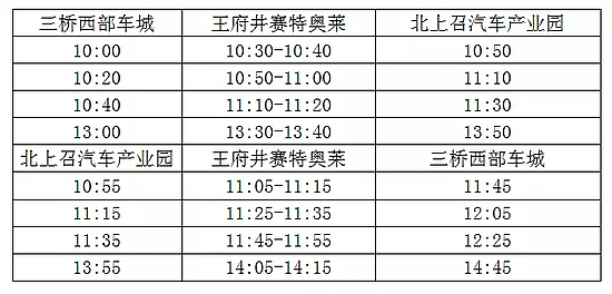 定制19号线:三桥西部车城—王府井赛特奥莱—北上召汽车产业园