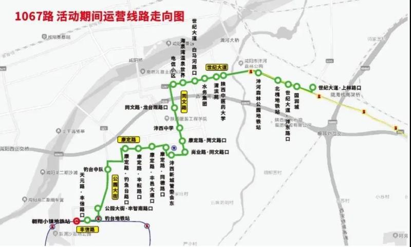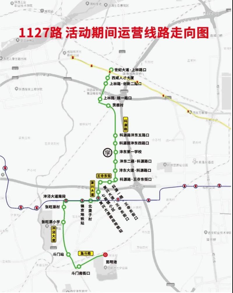 不停靠站点:沣泾大道·中心一路、西工大附小阳光城分校、西咸大厦、渔王村、上林桥南口、金旭路·上林路口、金旭路·朝阳五路口、西北电力建设小区、金旭路·朝阳六路口、秦汉新城政务服务中心、金旭路·朝阳七路口11处站点活动期间不途径停靠。