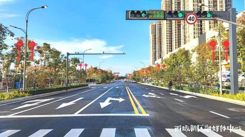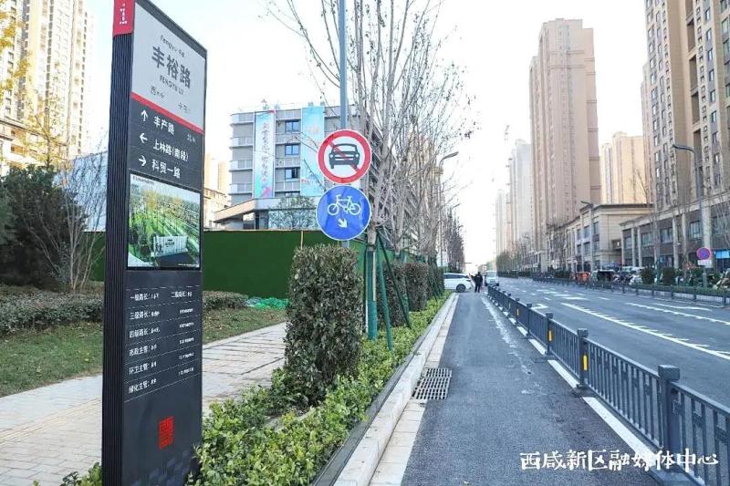 对西安绕城高速西咸立交出入口沿线及周边上林路、丰昌路、能源路、科贸路等8条道路,除了更换新路牌、优化交通标识标牌、断面恢复、行车道和人行道铺装层更新改造、维修等,还在丰裕路、科贸一路等路段加装了非机动车隔离护栏,在园区重点道路十字路口增设了交通信号灯,同步对井、路缘石、无障碍设施检查后进行维护修补和改造提升,不断改善道路通行条件。