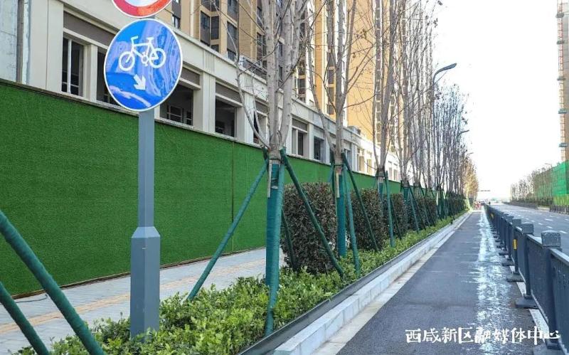 更新维护城市家具、美化施工围挡及建筑墙体、加强道路园林绿化……此次改造提升,集中对西安绕城高速西咸立交出入口沿线及周边重点道路两侧保洁员工具箱、便民座椅、配电箱、通信电缆箱等进行了常态化擦洗,对破损城市家具进行了更新维护,也对道路两侧建筑施工围挡及护栏墙体进行了标准化提升,统一更换为压顶式草皮围墙并设置园区公益宣传标语口号,使整体道路景观保持一致,统一区域内道路环境形象。