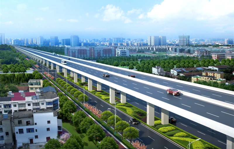 该项目为快速路,位于沣东新城斗门街道,西起豫章四路,东至沣东高新界,是西安市中心城区与西咸新区年初启动的5个互联互通项目之一,总投资11.2亿元,采用“主线高架桥+地面主干路”建设形式,全长2.7公里,红线宽度60米,双向6车道。其中,高架桥段长1.3公里,桥梁宽度26米,设计时速为80千米/时。