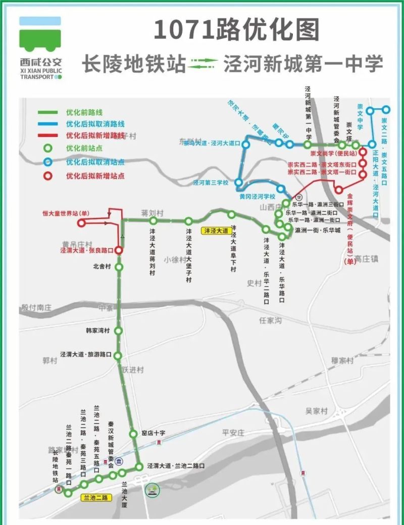 原线路首末站原崇文二路·崇文五路口调整至泾河新城第一中学,由泾河新城第一中学始发。